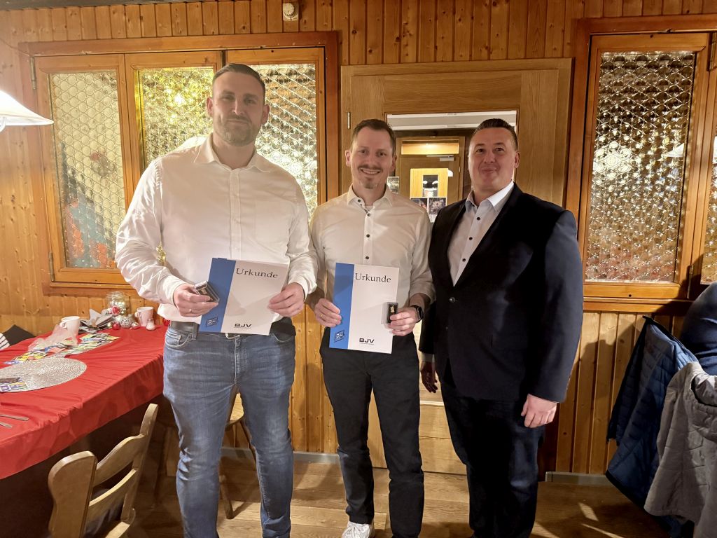 Am vergangenen Wochenende wurden im Rahmen der Weihnachtsfeier des TSV Mainburg Ehrungen des BJV für verdiente Funktionäre durchgeführt. Hierbei erhielten Stefan Grunst und Michael Graßl aus den Händen des Bezirksvorsitzenden Jürgen Neumaier jeweils die Ehrennadel in Gold des BJV.