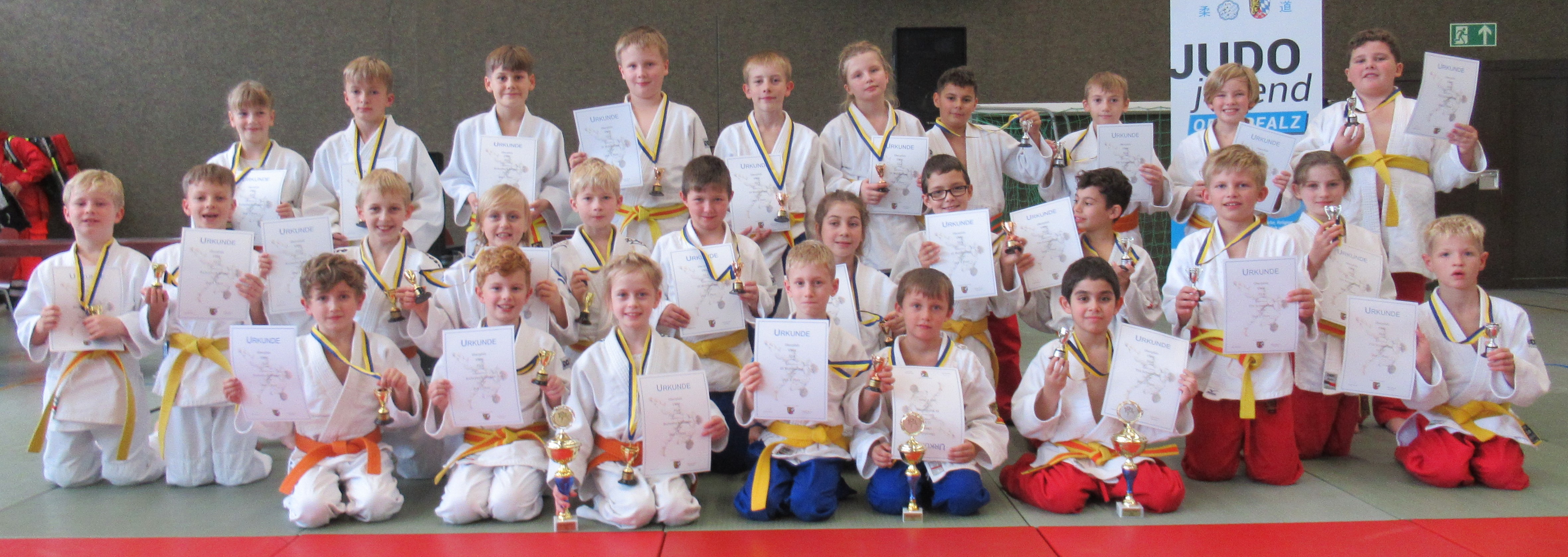 Nach den sechs Mannschaftsbegegnungen galt es, die knappen Ergebnisse auszuwerten. Die Leistungen aller drei Teams lagen sehr dicht beieinander, was die tollen Kämpferqualitäten der jungen Judoka beweist. Schließlich ging der dritte Platz an den SV Mühlhausen, der sich einen Mannschaftssieg sichern konnte, den Vizetitel erreichte der TSV Schwandorf mit zwei Siegen und Oberpfalzmeister wurde die KG Eschenbach/Ensdorf mit drei gewonnenen Begegnungen. Alle KämpferInnen nahmen stolz ihre Pokale und Urkunden entgegen.