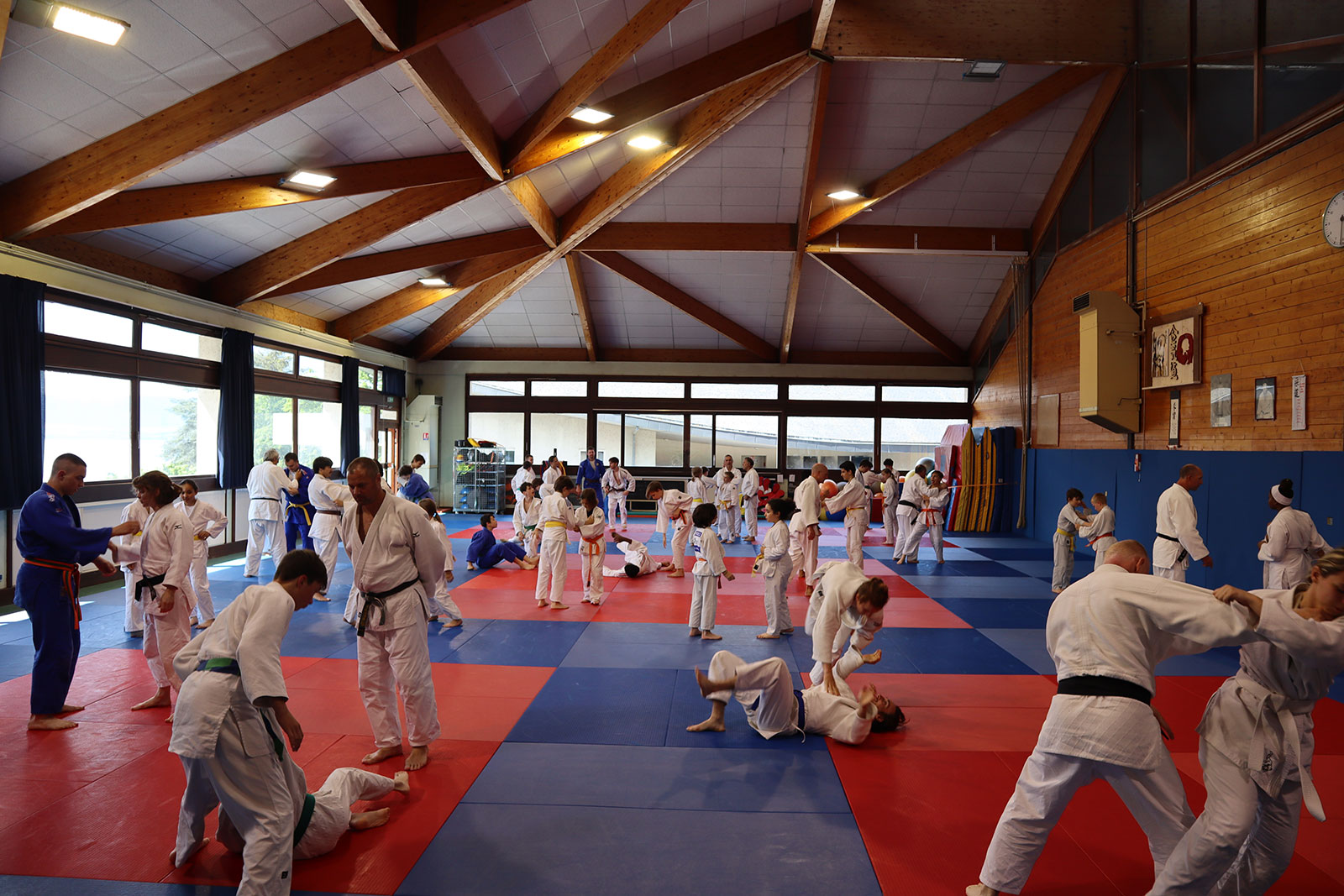 Der Samstag begann mit einer aufregenden Bergtour, vorbei an kleinen Wasserfällen und Bergziegen. Sie wurde durch eine spontane Schneeballschlacht aufgelockert. Am Nachmittag fand das erste Judotraining in Thonon-les-Bains statt. Die Trainer und Betreuer achteten darauf, dass gemischte Trainingspaare gebildet wurden. Trotz Sprachbarrieren konnten die jungen Sportler super miteinander kommunizieren und trainieren. Nach dem Training wurde Christophe Chéreau von seinem Jugendtrainer der 5. Dan Judo überreicht, für den er kurz zuvor die letzten Prüfungsteile erfolgreich absolviert hatte. Das wurde dann auch im Restaurant nebenan gefeiert.